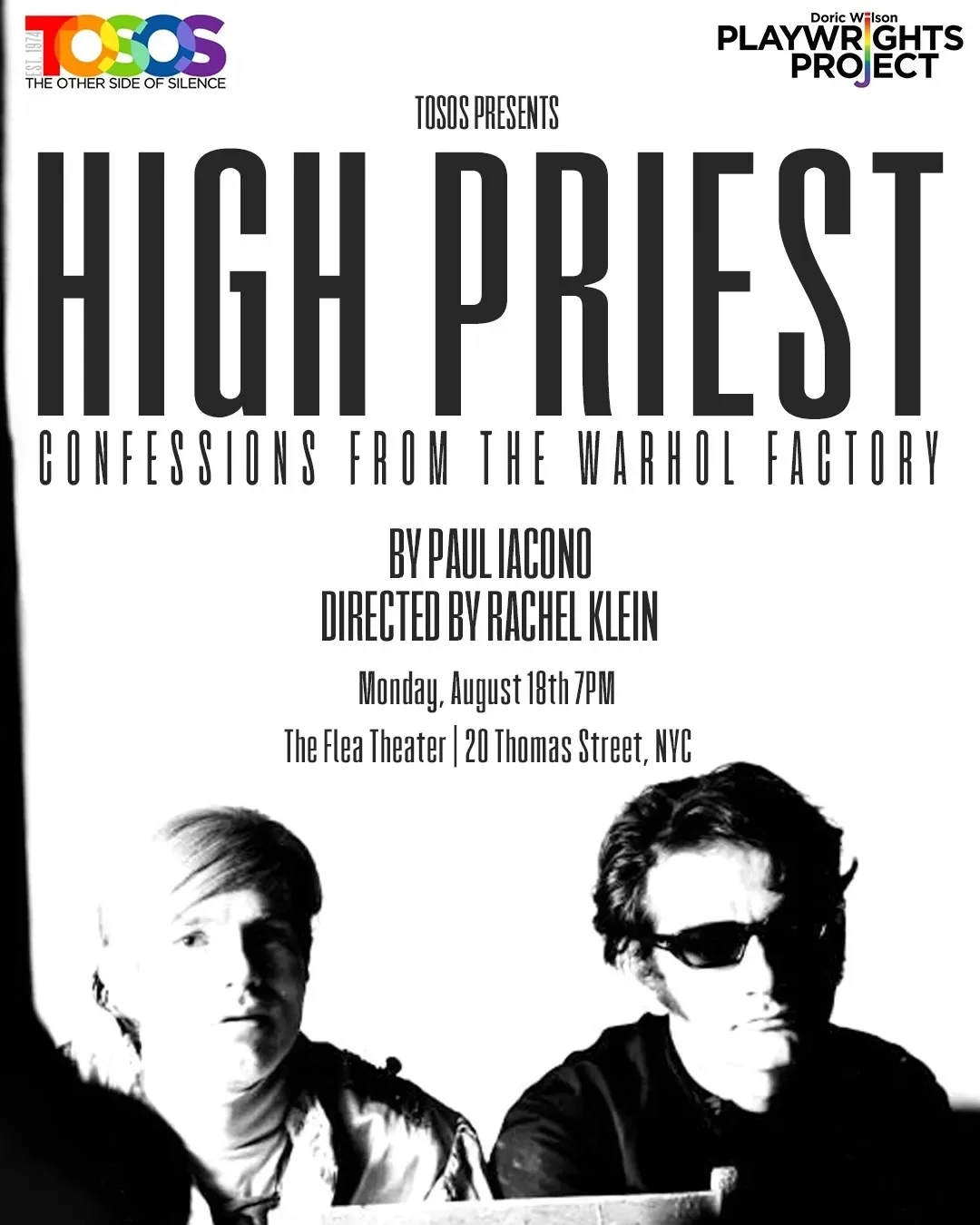 High Priest, written by Paul Iacono, tells the wild, untold story of Warhol Superstar Ondine (Robert Olivo) — a brilliant, gay performance artist and self-proclaimed “Pope of the amphetamine people” — charting his rise and fall inside Andy Warhol’s 1960s Silver Factory, only to discover the true cost of superstardom. Featuring an iconic ensemble of Factory Superstars — Edie Sedgwick, Billy Name, Gerard Malanga, Brigid Polk, Paul Morrissey, Lou Reed, Nico, and more — HIGH PRIEST is a kaleidoscopic journey through the glamour, chaos, heartbreak, and mythmaking of the Silver Sixties and beyond.